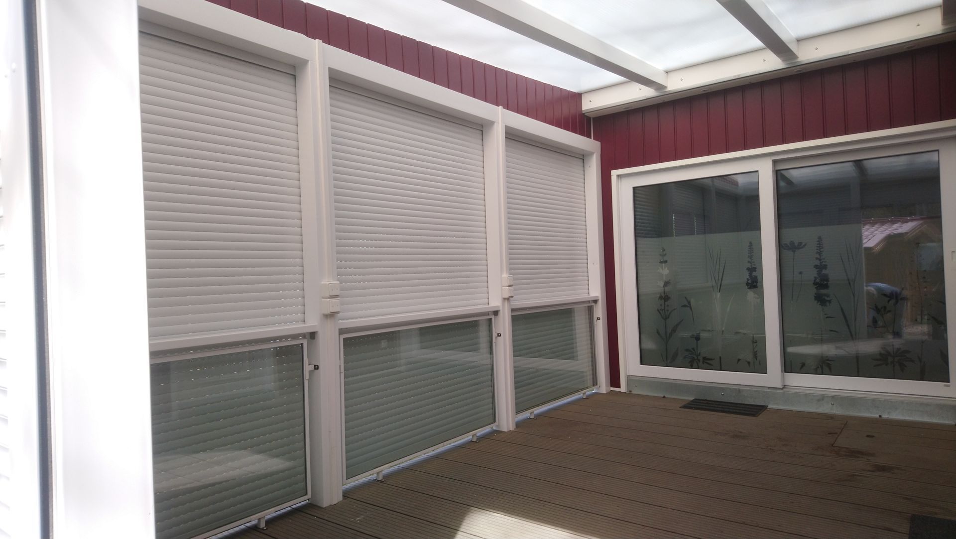Hebe- Schiebeanlage und Aussenrollos mit Brüstungsglasverkleidung
